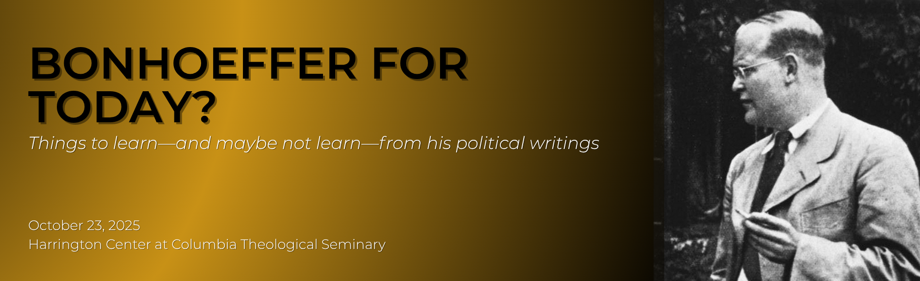 This one-day symposium draws together an international group of scholars to address these and other questions. Join us for workshops, a keynote lecture with Lori Brandt Hale, president of the International Bonhoeffer society, a screening of the Journey Films movie Bonhoeffer, and a panel discussion exploring the legacy and current relevance of this compelling figure at the intersection of faith and politics.